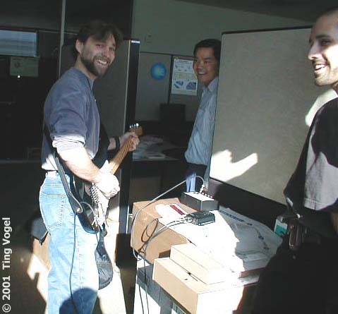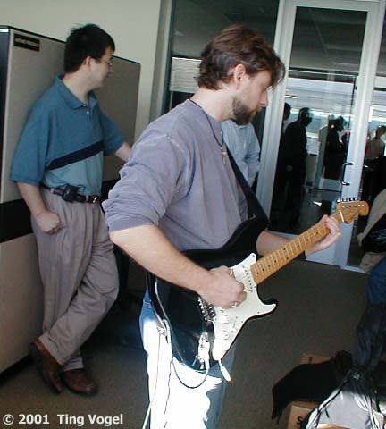 Well, they did warn us it was going to happen, but when it did, we were all taken off guard.  The UPS's kicked in right away and all the critical servers remained up for the duration of the blackout.  We remained productive with our time.  I was most impressed with Antonio.  He has the whole setup with a battery-powered amp!  I suppose if you are good enough to share the stage with Metallica, you would probably be that prepared.  Downstairs, the engineers found that you can in fact play foosball in the dark!