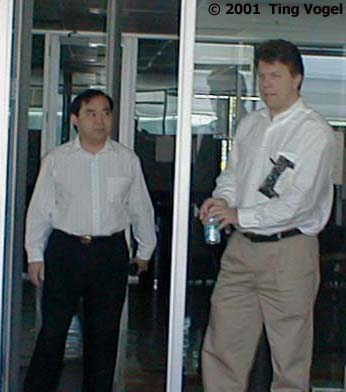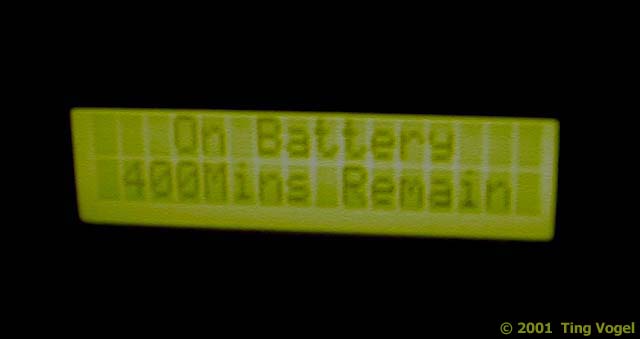 The blackout lasted about an hour and a half.  A lot of people took an early lunch.   The UPS display was messed up, but I had a formula that I used to figure out how much time we have left, so I was not worried.  I stuck the picture of George in there because I thought it was great that I finally got to meet George in person.  George works for ATS and he is the most service-oriented engineer I have had the pleasure of dealing with.  When I first "met" George a year and a half ago, he and Cindy, my account rep at Pacific Bell, bailed me out of an ISP situation by getting me a T1 in a week and a half!  Just call him Super-George!