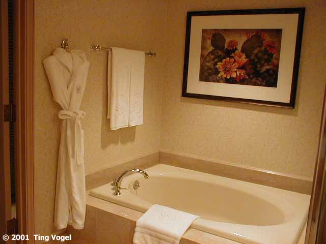 We arrived back at the Phoenician after dark to find our bags waiting for us in the room. The room itself was about the size of two normal hotel rooms with a large sitting area. The bath was European-styled, with a bidet. I have never seen a bidet in an American resort before, although of course, such are the norm in Europe.