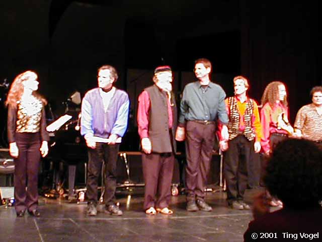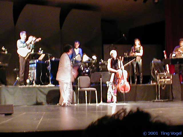 The most exciting part of the show was Terry Riley's new concerto, Banana Humberto 2000. Featuring Terry at the piano, and guest violinist Tracy Silverman (from the Turtle Island String Quartet) replacing Karen Bentley, this work featured lots of interesting interplay between the musicians, especially during the driving third movement (subtitled Goodbye Goodtimes Blues for Millenium's Child).