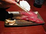 We decided to explore the Akasaka district as part of our dinner restaurant search. Our trip took us around to the Tokyo Broadcasting Service, where two giant robots stood guard near the entrance. After walking for close to an hour, we decided to try a restaurant called the New Seafood. We expected that the name implied an English-speaking waitstaff. Much to our chagrin, not only did the waitstaff not speak English, the menu was entirely in Japanese. But there was a sushi bar! So we fell back on sushi, and by the end of the night, the sushi chef there was feeding us huge portions of fish. Yum!!