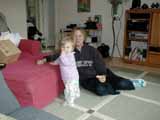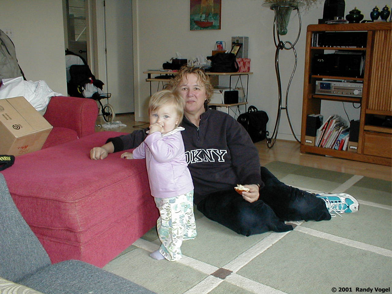 family photo of Mom & Fiona hanging out in Kirsten's living room, and
