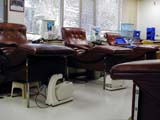 Nurse Therese was a little apprehensive about me taking pictures...She didn't want to look at the camera, but she gave me a good mona lisa smile. And while the sign out on the street was advertising a need for all blood types, you can see that things were pretty slow when I was visiting...no one else donating at that time.