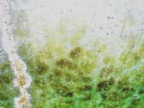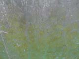 stimulated the growth of green algae or lichen on the concrete wall of the