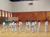 After lunch, we changed into our doboks and gathered in the main gym. Instead of working out right away, we were treated to demonstrations of three martial arts styles. The first demo was traditional Korean Martial Arts, which reminds me a lot of Wushu, including the use of weapons and staffs in the forms. The next demo was Taekwondo with spectacular kicks that require tremendous coordination and agility. The students are probably all majoring in Taekwondo Demonstration (it's a real degree!). The last demo was Kumdo, which is the Korean art of sword-fighting.